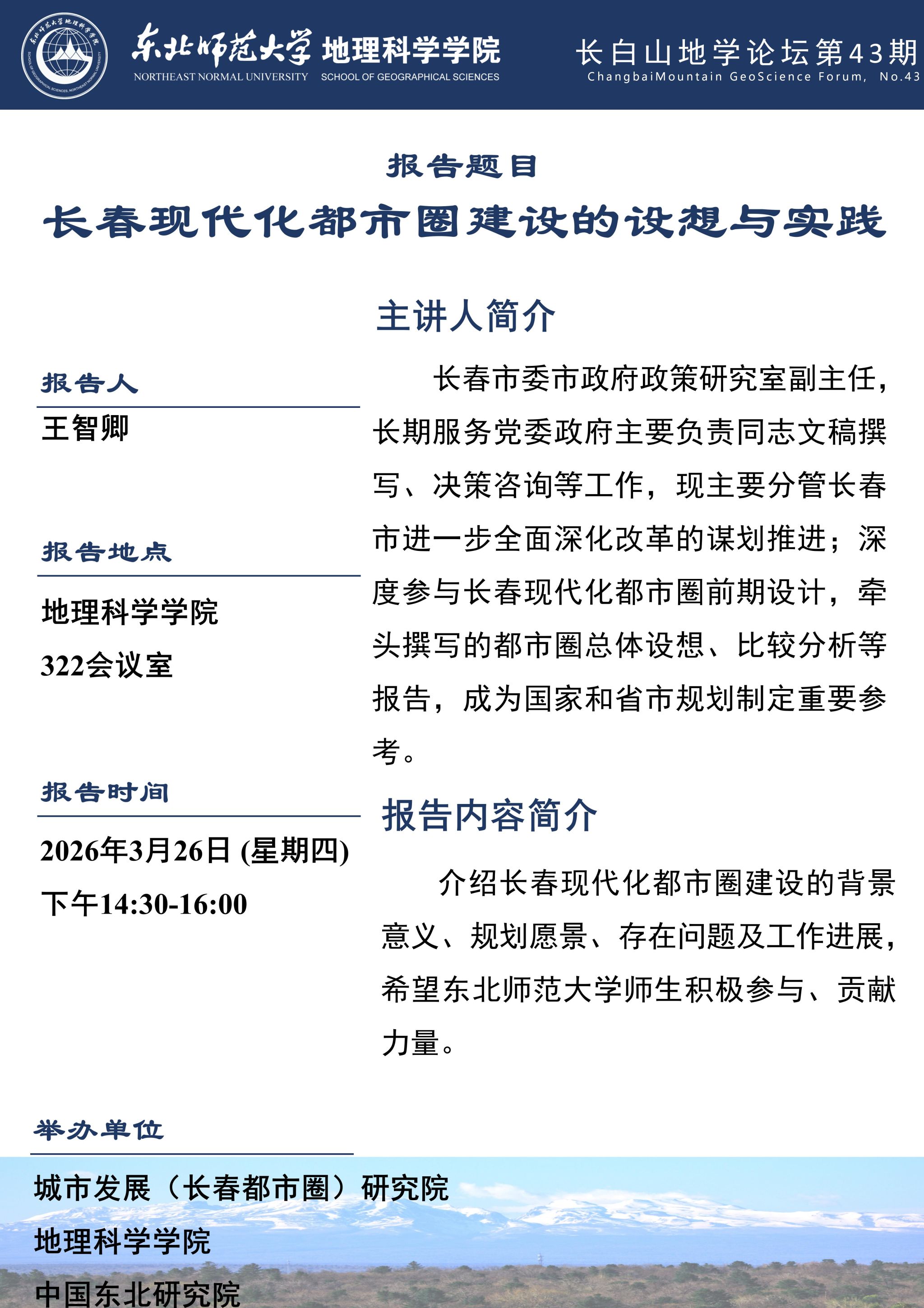 【长白山地学论坛(第43期)】王智卿:长春现代化都市圈建设...