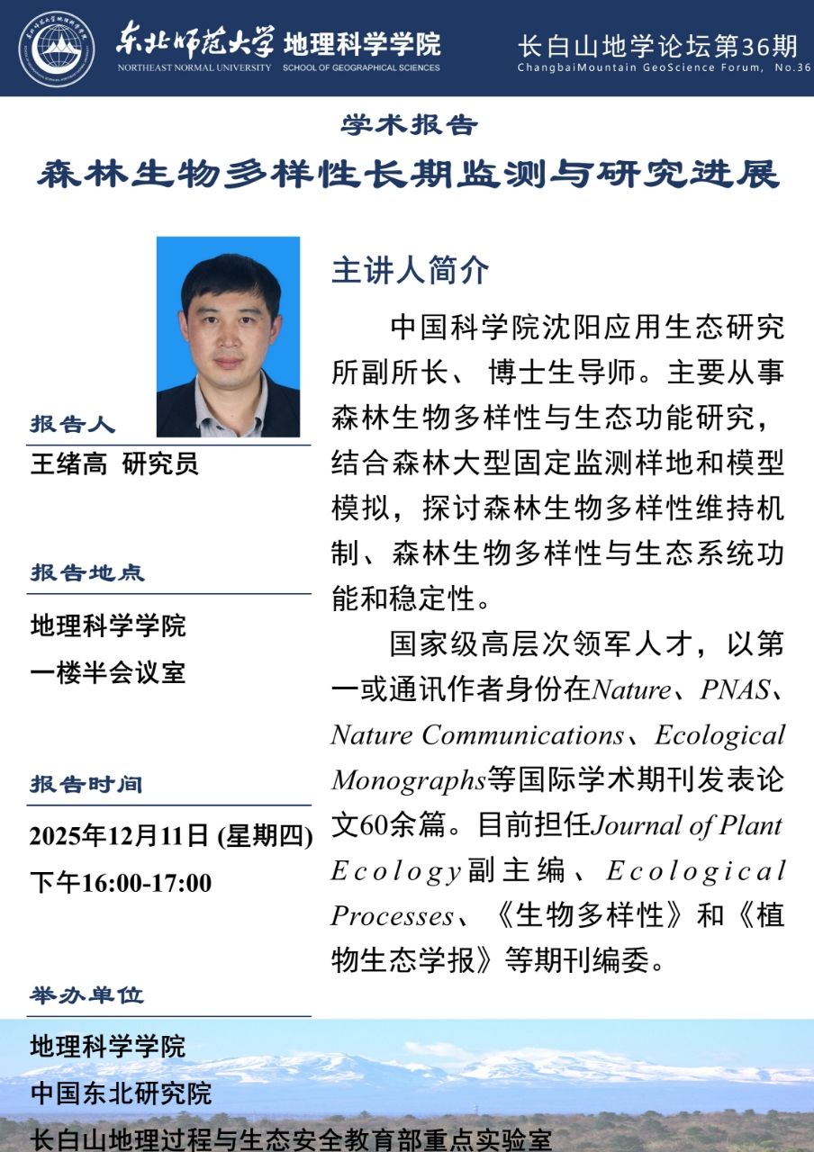 【长白山地学论坛(第36期)】王绪高:森林生物多样性长期监...