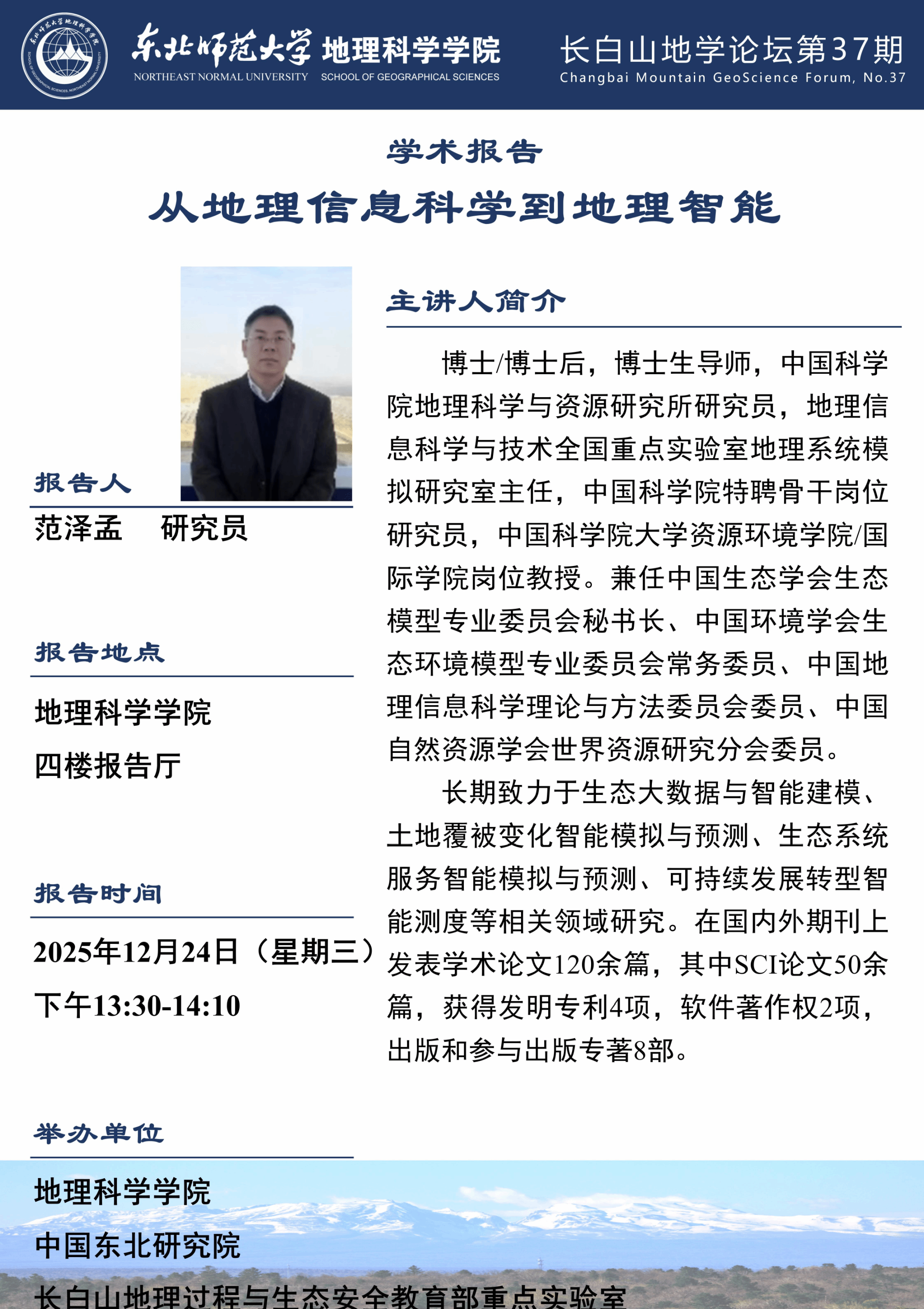 【长白山地学论坛(第37期)】范泽孟:从地理信息科学到地理智能